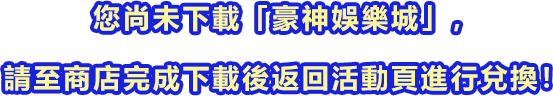 •本活動僅限綁定台灣手機門號參加。活動期間內,新用戶下載並綁定手機,成功兌換序號可獲得一次抽獎機會;於萊爾富超商購買MyCard500元以上,並使用於豪神娛樂城官網、PC版、儲值版內儲值,每個手機門號可累積多次抽獎機會,但最終每個門號最多僅能獲得一個獎項。